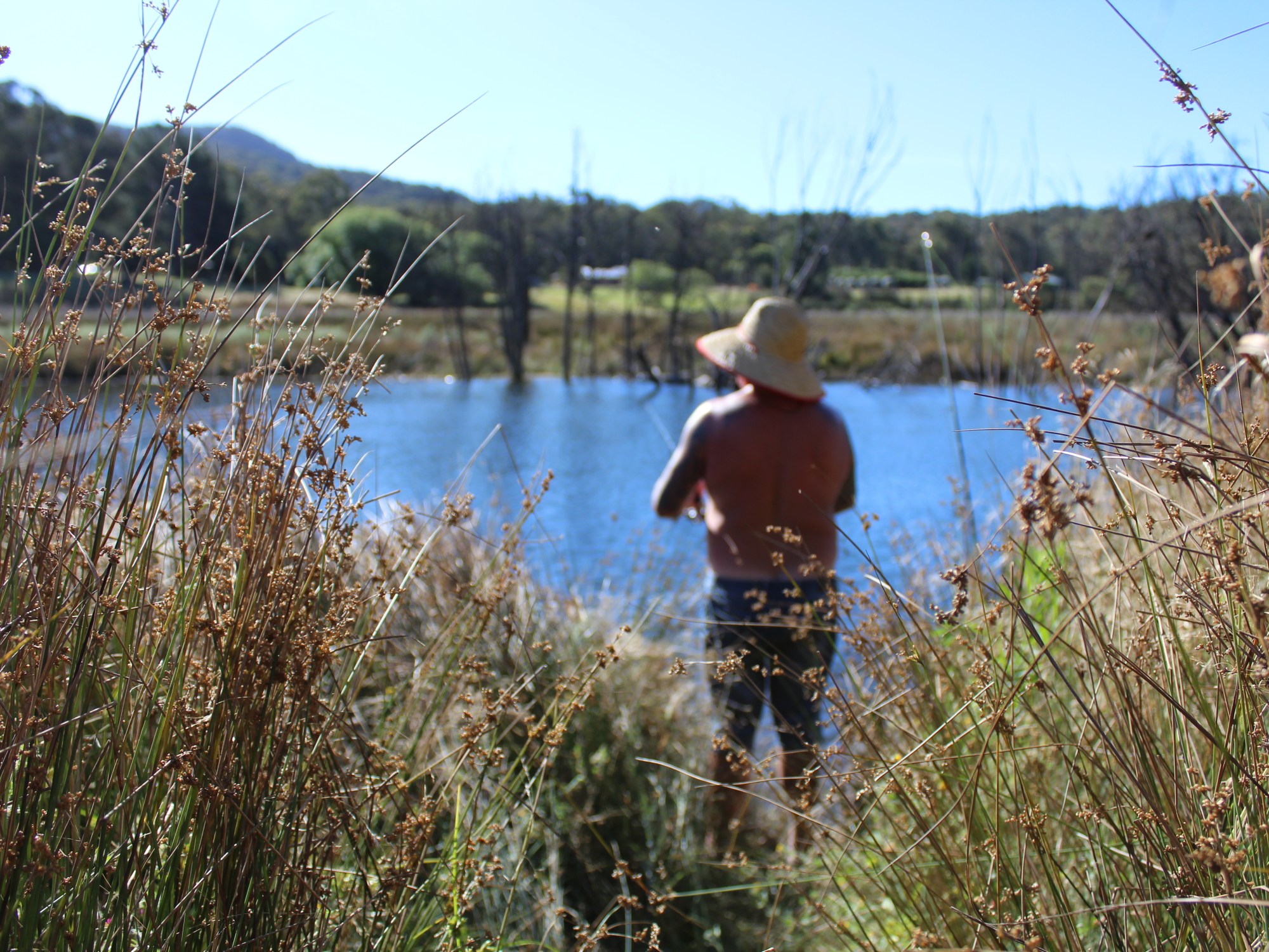 We take the boat out. Mum can barely swim, but Dad and I like to fly in top speed. An argument as Mum is too hopeless to work the clips on the life jacket, and Dad takes the bends way too hard. No fish caught. A Johnny Cash song, “How high’s the water Mumma?”, gets stuck in my head as we check the depth sounder and navigate our way through treetops.