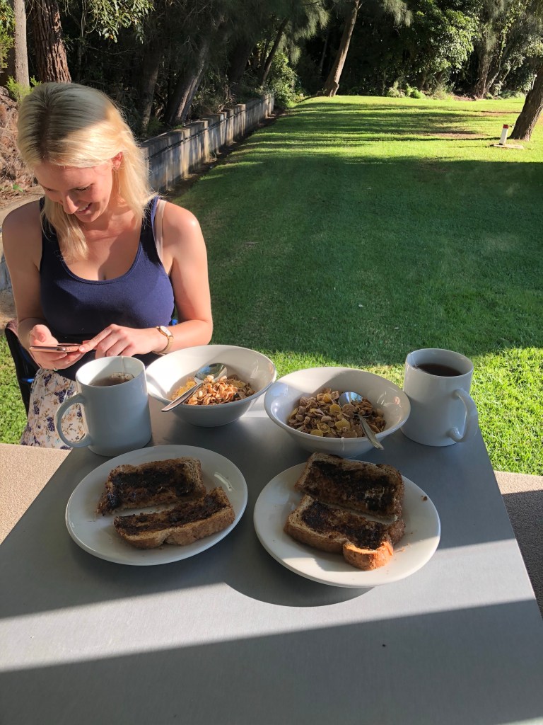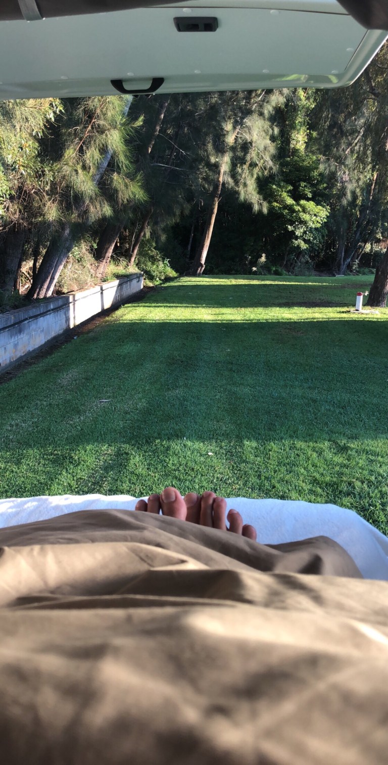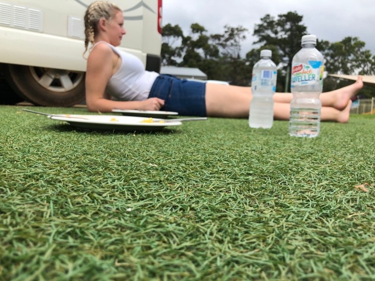 Big days of walking through shrubs, getting lost, hiking, playing on swings, eating fish n chips, listening to Jack Johnson sing about Pina Coladas, drinking coffee, searching for toilets (that bloody coffee does it every time), giggling, folding tables up and beds down, and saying “HOW BEAUTIFUL” and “Are you sure we turned the gas bottle off?” x1000 times a day.